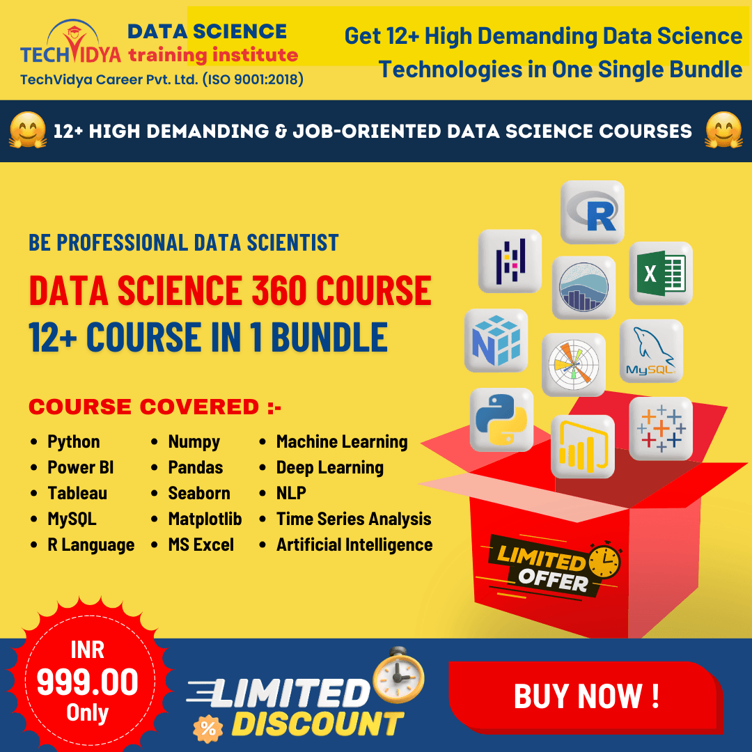 Master 12+ In-Demand Data Science & AI Tools (Python, ML, DL, Power BI, Tableau, SQL, Excel & more) in One All-in-One Data Science 360 Bundle with Expert Video Lectures, e-Content, 30+ Projects, Real Interview QnA’s, Resume Templates, and ISO Accredited Course Completion Certificate.